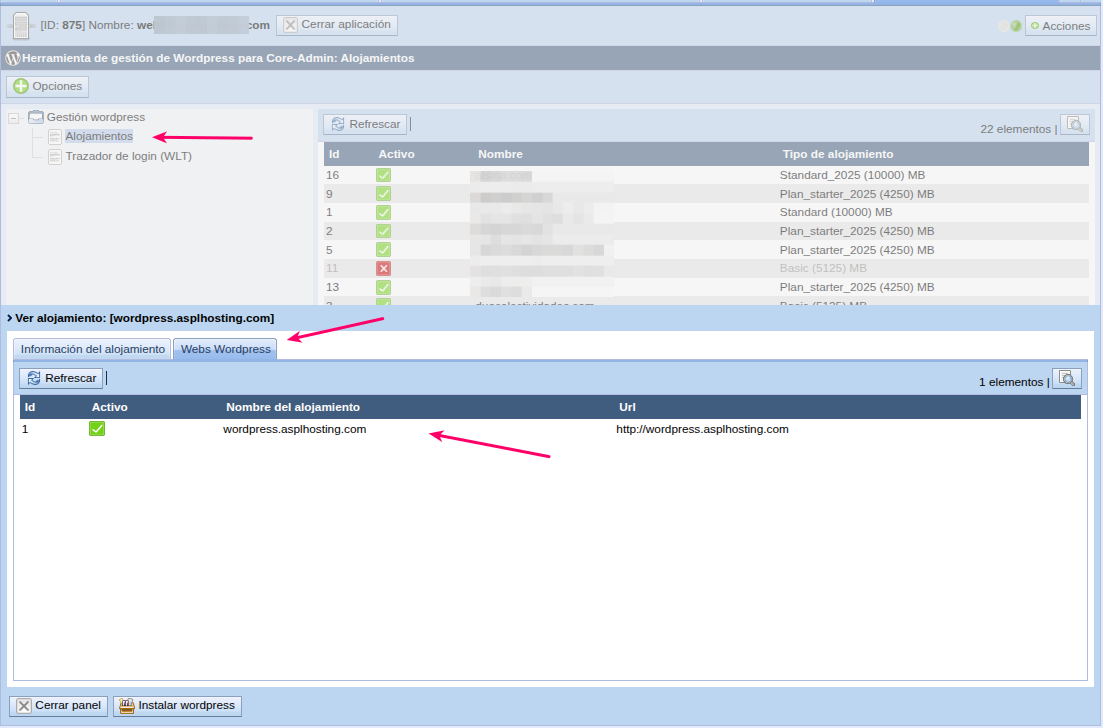 - Haz clic en el WordPress que quieras analizar para abrir su ficha